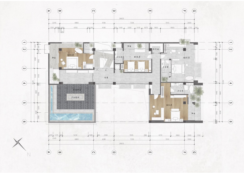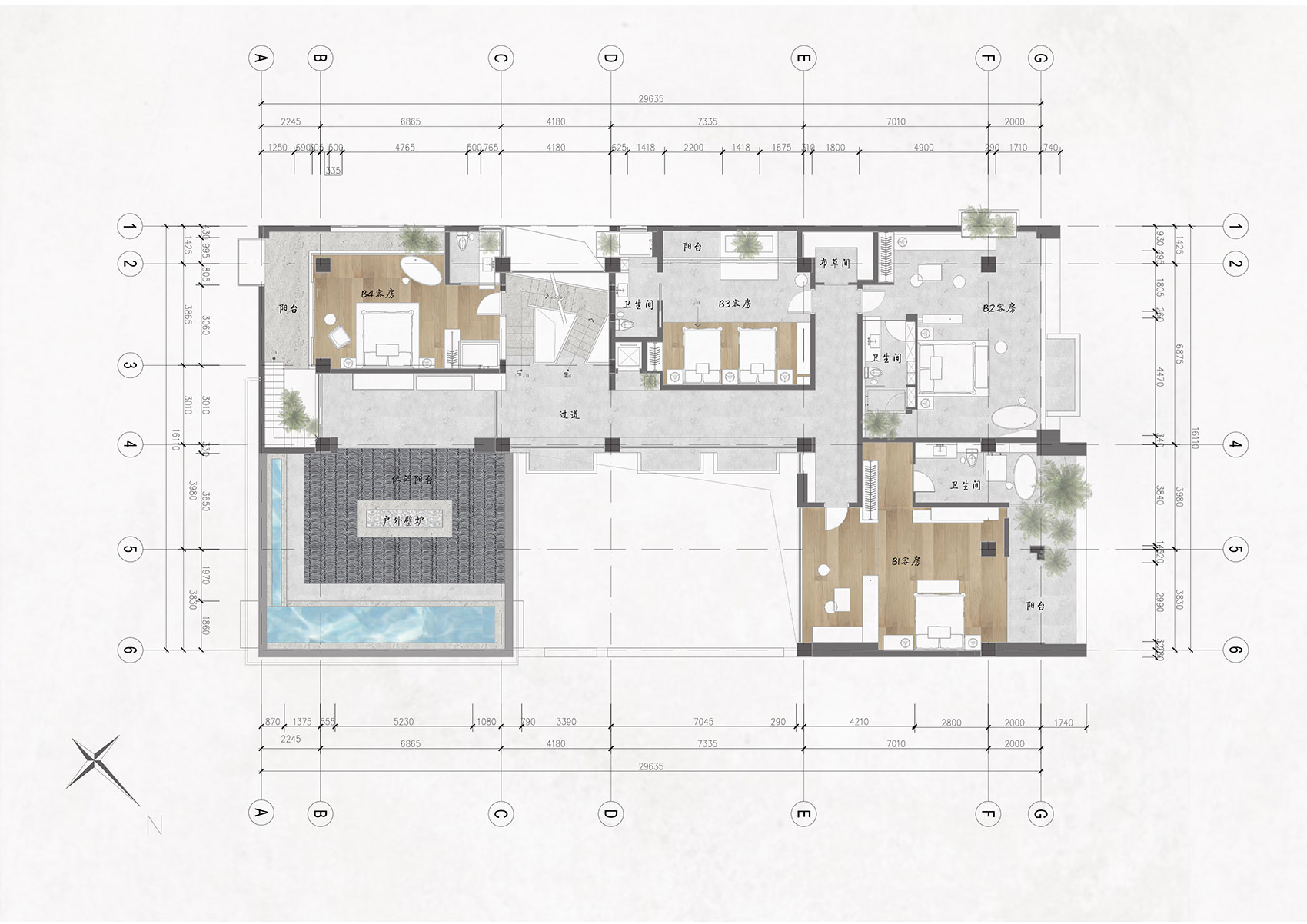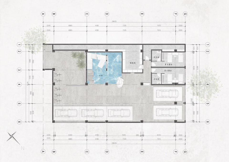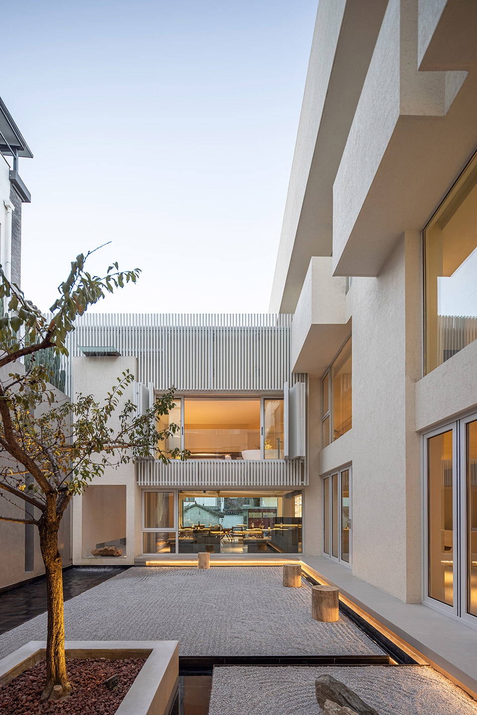 ”一水绕苍山,苍山抱古城“的概念始终贯穿着整个建筑,屋顶的水系一直流向庭院以及地下室,犹如融化的雪水滋养着这片土地。