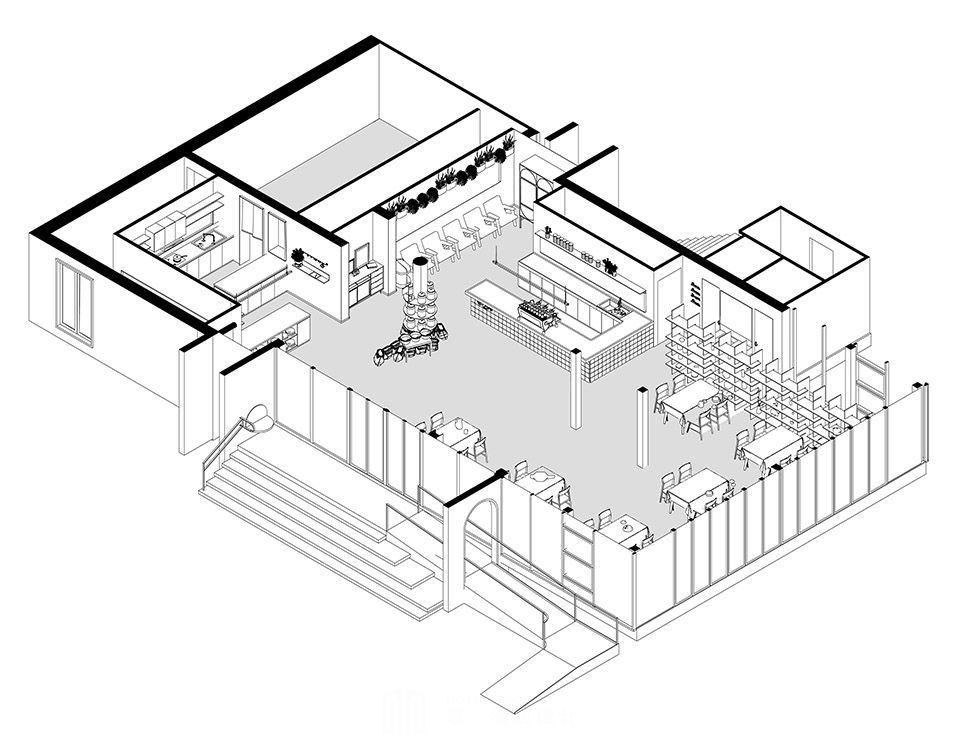整个设计过程中参与度较高,呈现方式到最后的每种材料的选择,这样保证了餐厅项目的设计和落地实施都非常高效。场地生态环境非常好,高大且自由生长的树木、大片的草坪、充满意境的荷花池塘等。我们的改造策略是把老建筑处理的尽可能的简单,去掉多余的装饰与符号,从实用功能出发。